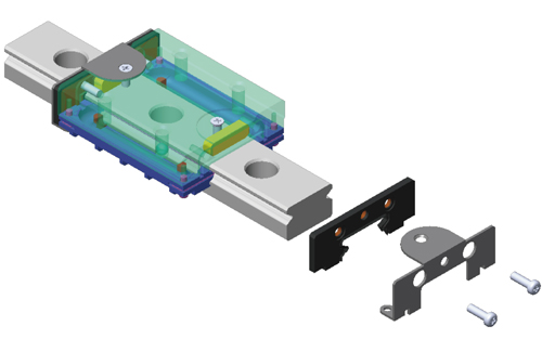 端面強化設計:采用金屬加強片,以鎖緊式設計將滑塊兩端塑膠蓋包覆住,并使用螺絲將滑座鋼體上方、側方、下方五點式鎖固,強化端蓋剛性及包覆性,以承受更快的運行速度;且加強片與滑軌間采間隙設計,使得金屬加強片亦具備刮刷片的功能。